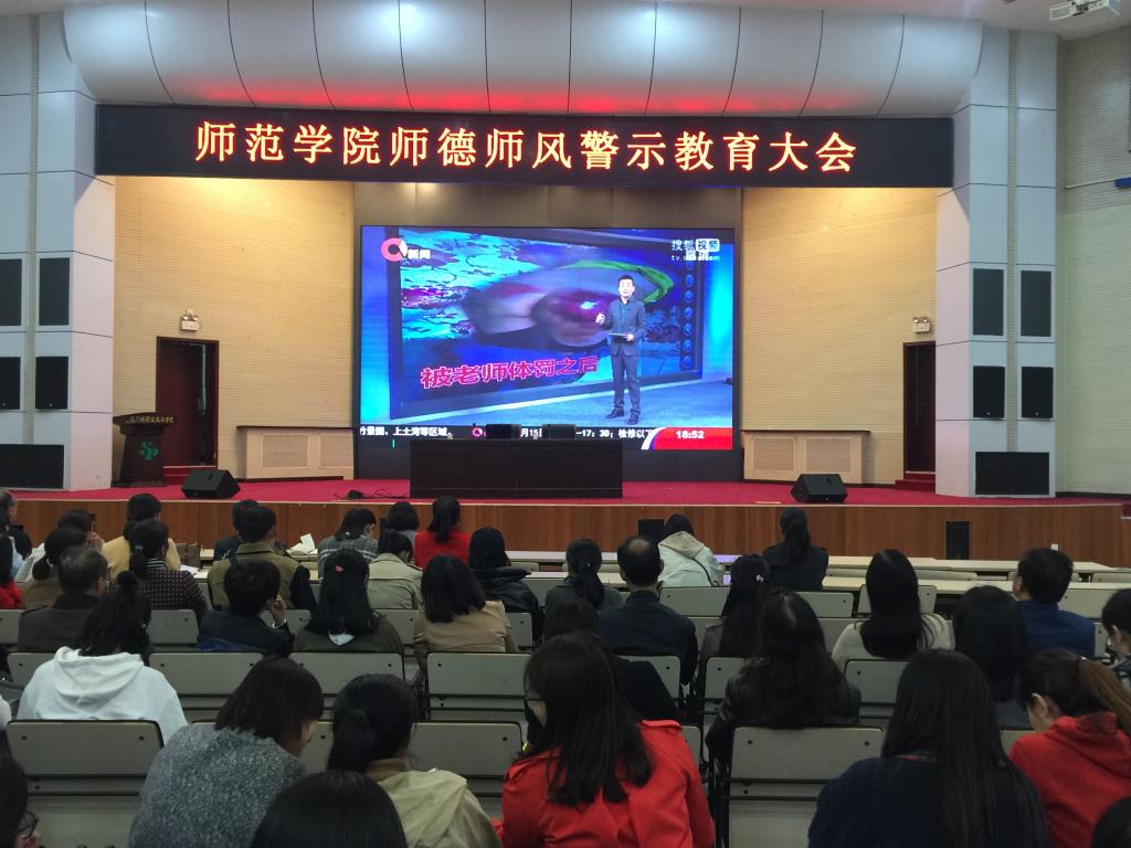 2018年10月24日晚8:30,球速体育在学术报告厅举行师德师风警示教育全体教师会议。总支书记樊卫兵主持会议并发表讲话。