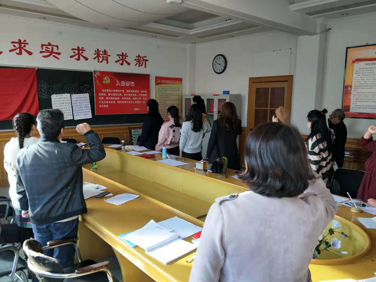 活动第一项,全体起立,面向党旗,庄严宣誓。
