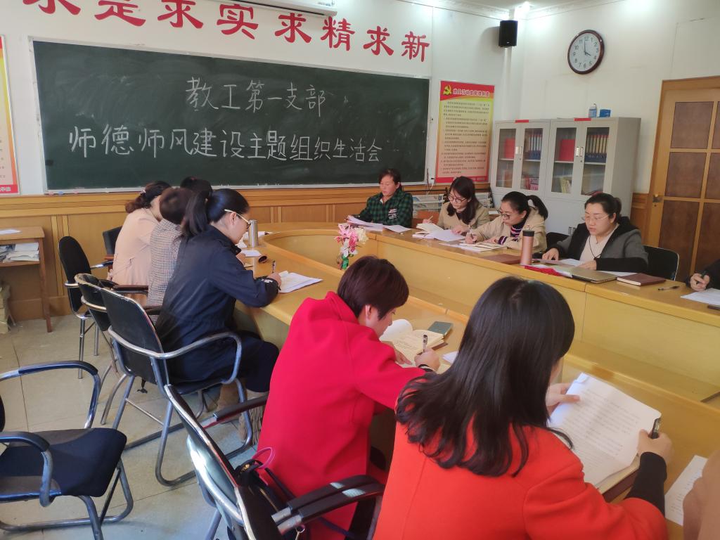 为开好这次专题组织生活会,会前教工一支部组织党员认真学习相关文件精神,学习先进人物,典型事迹。对照“四有”好教师标准和先进典型,全体党员深入查摆自身在师德师风,立德树人方面存在的问题,撰写个人对照检查材料,制定整改措施。