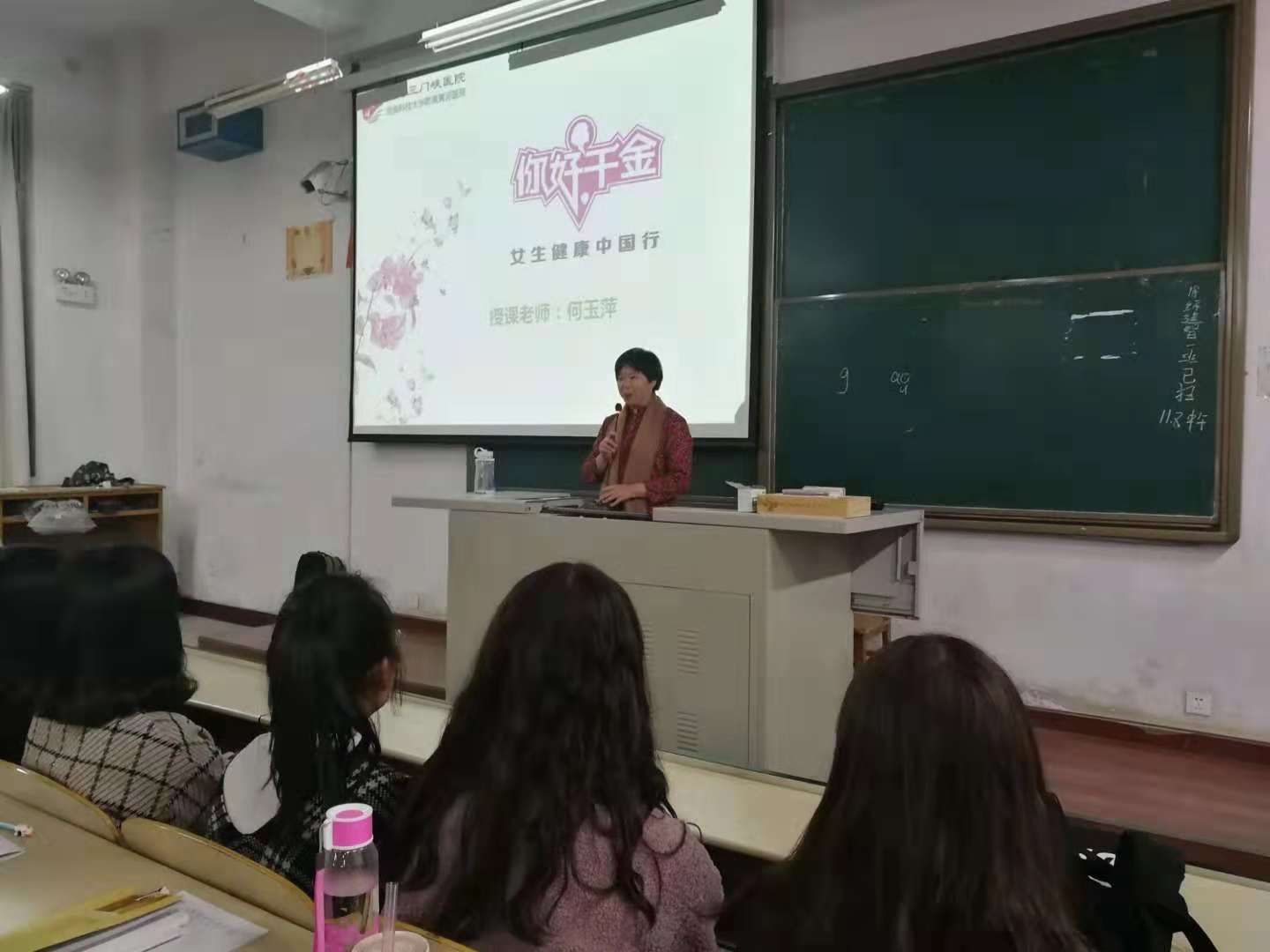 2018年11月8日晚,三门峡职业技术学校球速体育在1409教室开展“你好 千金”女生健康中国行的讲座,此次讲座的主讲人是三门峡市黄河医院何玉萍经理,参加讲座的是18级球速体育全体女生。